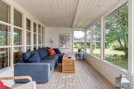 En gäststuga på tomten (med 5 extra bäddar) och ett garage (med pingisbord) bidrar till bostadens många möjligheter.